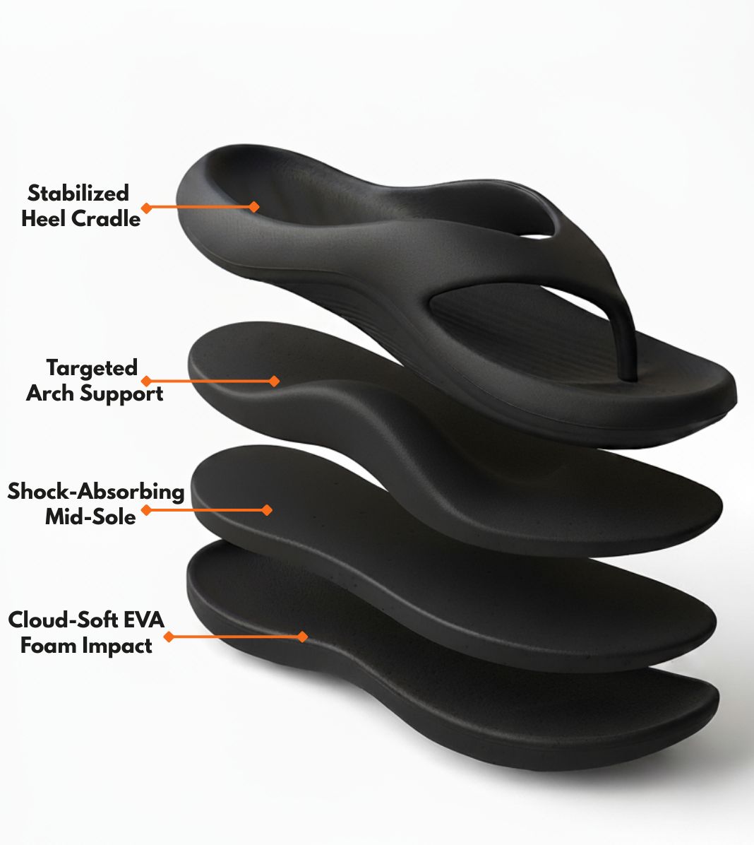 Sootheez Flip Flops go beyond comfort, offering clinical-grade support to ease daily foot pain and fatigue. Perfect for long hours on your feet or chronic foot conditions.